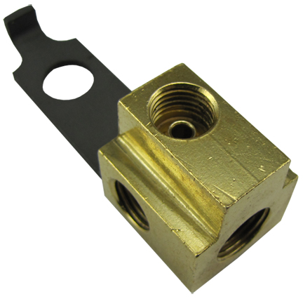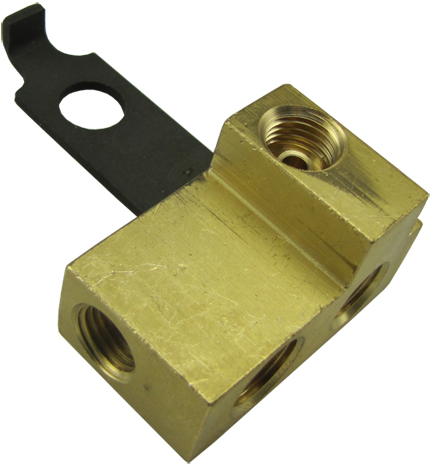 *SEE R189BE FOR 1966* THIS BRASS BLOCK ALLOWS USE OF A DUAL MASTER CYLINDER FOR 1964-1966 CARS.THIS JUNCTION BLOCK MOUNTS TO THE D.SIDE FRONT FRAME RAIL BELOW THE BASE OF THE FIREWALL. ALL BRK LINES ARE JOINED AT THIS BLOCK.