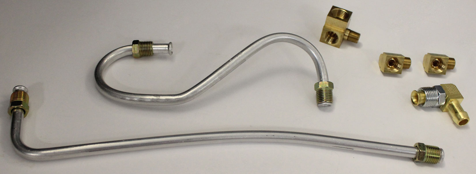 N128L IS WITH FRONT CARBURETOR FUEL BLOCK, CENTER AND REAR 90 DEGREE FITTINGS AND FUEL INLET FITTINGS