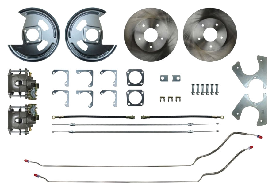 1968-1972 REAR DISC BRAKE CONVERSION KIT WITH STAINLESS STEEL REAR AXLE LINES. (RE)