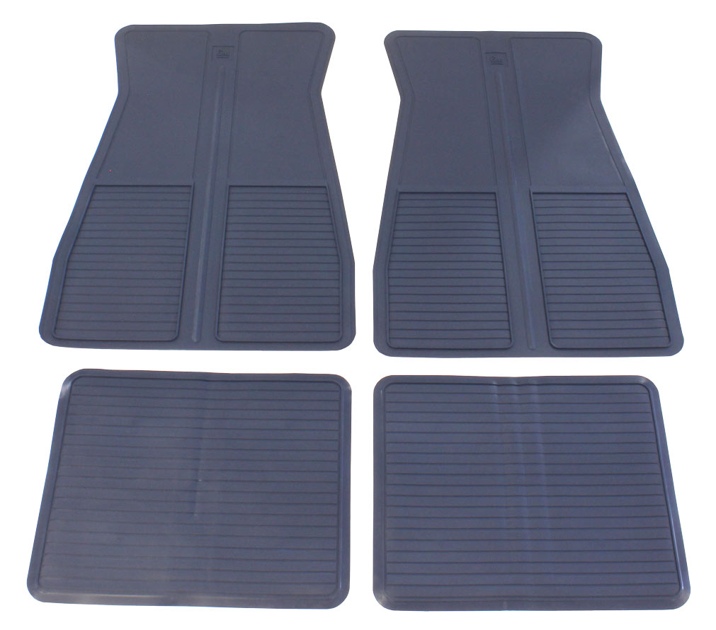1973-77 ACCESSORY MAT SET, DARK BLUE, FULL SIZE & GRAND PRIX, 4-PIECE SET WITH GM LOGO ON FRONT MATS (RE)