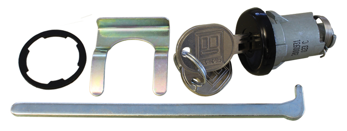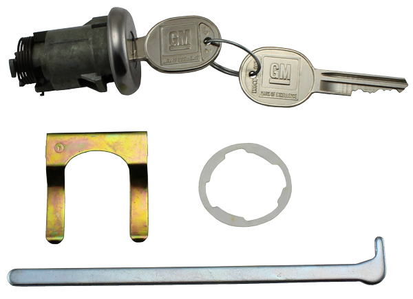 1966-67 BLACK FACE DECK LID LOCK ASSEMBLY WITH LATE-STYLE KEYS (AP)