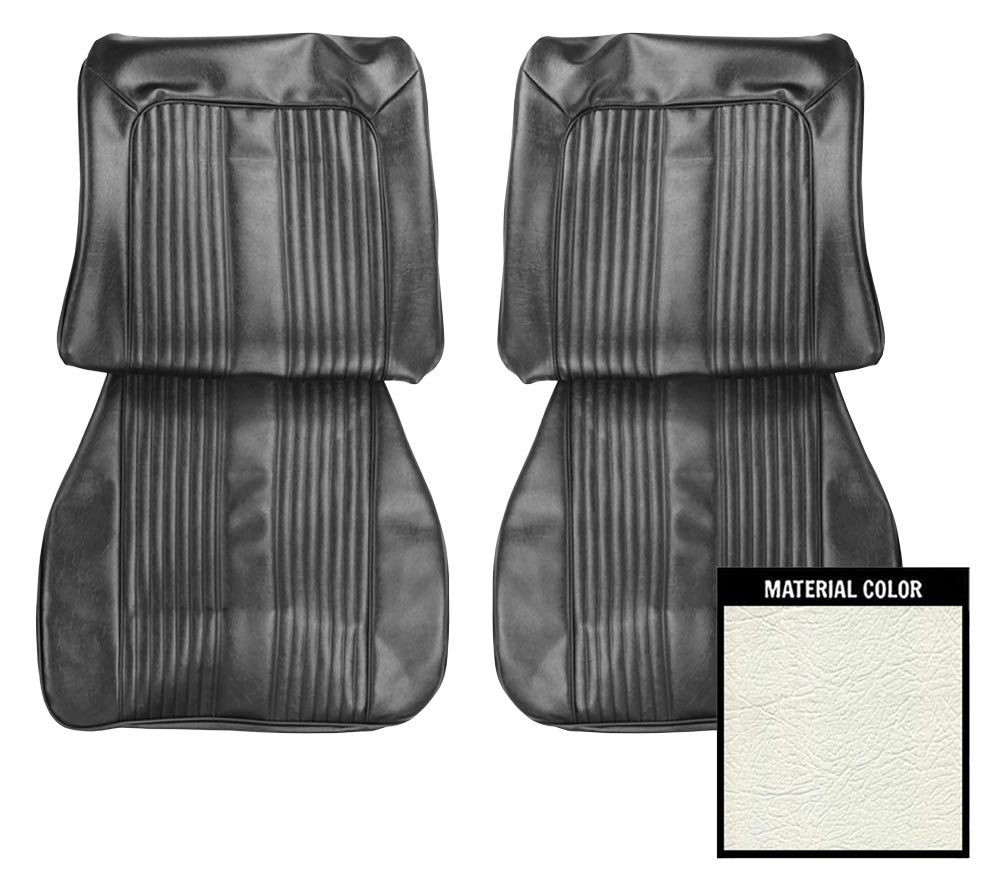 NON STOCKING ITEM, PLEASE ALLOW 4-6 WEEKS FOR DELIVERY**PUI BRAND©. REPRODUCTION SEAT UPHOLSTERY IS MADE FOR GTO/LEMANS UNLESS OTHERWISE SPECIFIED. 1964 SEAT UPHOLSTERY KITS ARE MADE TO ORIGINAL FACTORY SPECIFICATIONS USING A STRONG BACKING, AND POLYESTER BATTING DIELECTRICALLY HEAT-PLEATED WITH A HIGH-QUALITY SEVILLE-GRAIN VINYL. WE STRONGLY RECOMMEND REPLACING YOUR SEAT PADDING WHEN CHANGING YOUR UPHOLSTERY. INSPECTION OF SEAT SPRINGS FOR BREAKAGE IS ALSO HIGHLY RECOMMENDED. ALSO SEE HOG RINGS, HOG RING CUTTERS AND PLIERS THAT WILL BE NECESSARY FOR INSTALLATION. QUALITY OF ALL SEAT UPHOLSTERY IS EXCELLENT. WE SELL BOTH PUI AND LEGENDARY BRAND SOFT TRIM PRODUCTS. WHEN ORDERING, BE SURE NOT TO MIX THE TWO BRANDS AS COLORS ARE SELDOM COMPATIBLE. COLORS OTHER THAN BLACK REQUIRE SAMPLE VERIFICATION PRIOR TO ORDERING. PLEASE CALL OR EMAIL FOR YOUR FREE SAMPLES. 800-421-2637 customer.service@amesperf.com.